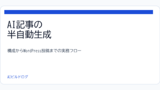 AIで記事作成を効率化する際に、どこを自動化してどこを人が持つべきかを整理しました。構成生成から WordPress 投稿までの半自動フローをまとめています。